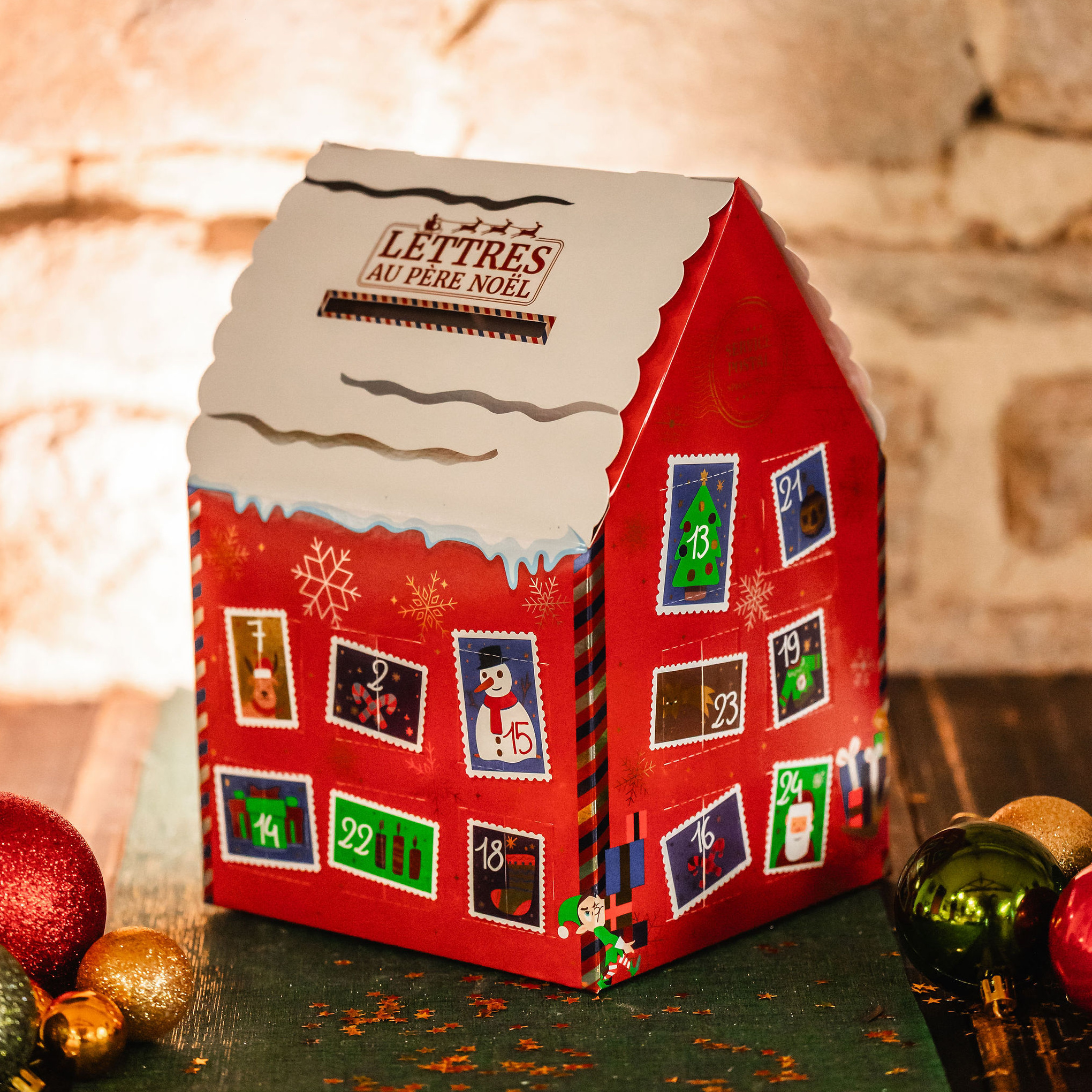 Calendrier de l’Avent garni de nos pralinés, rochers, mendiants, fritures de Noël, enrobés de chocolat : caramels, pâtes de fruits, nougats et guimauves.