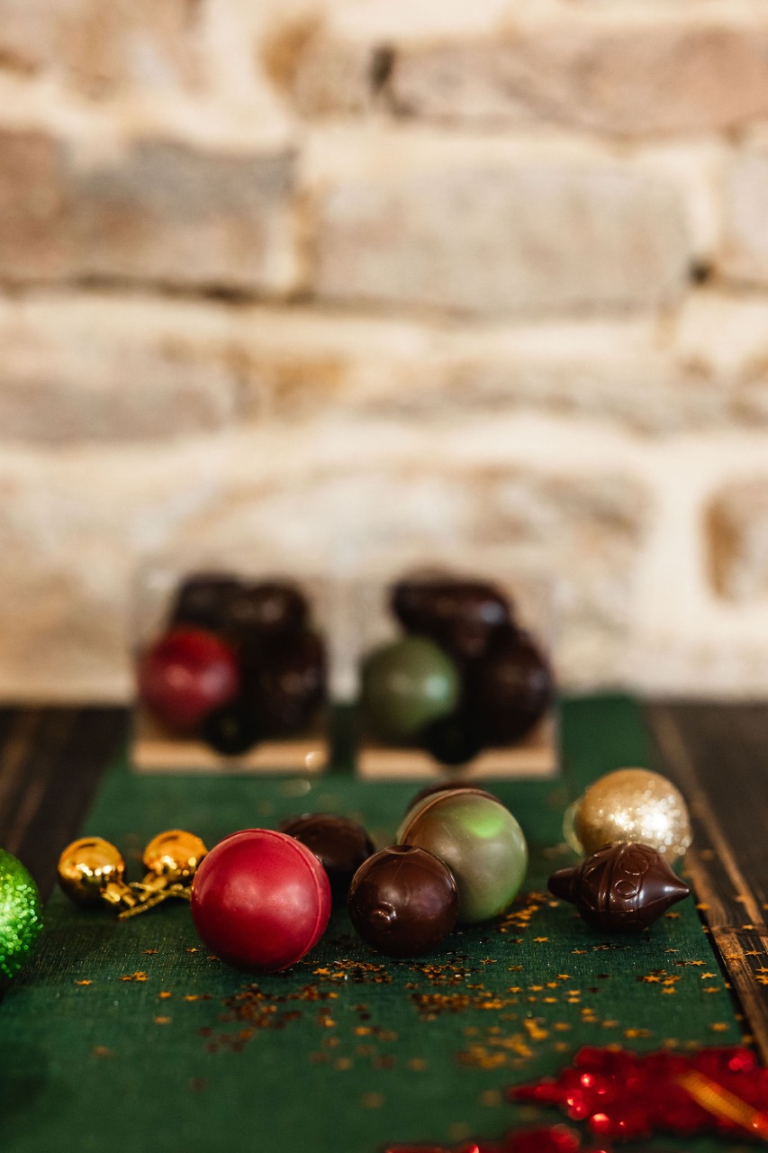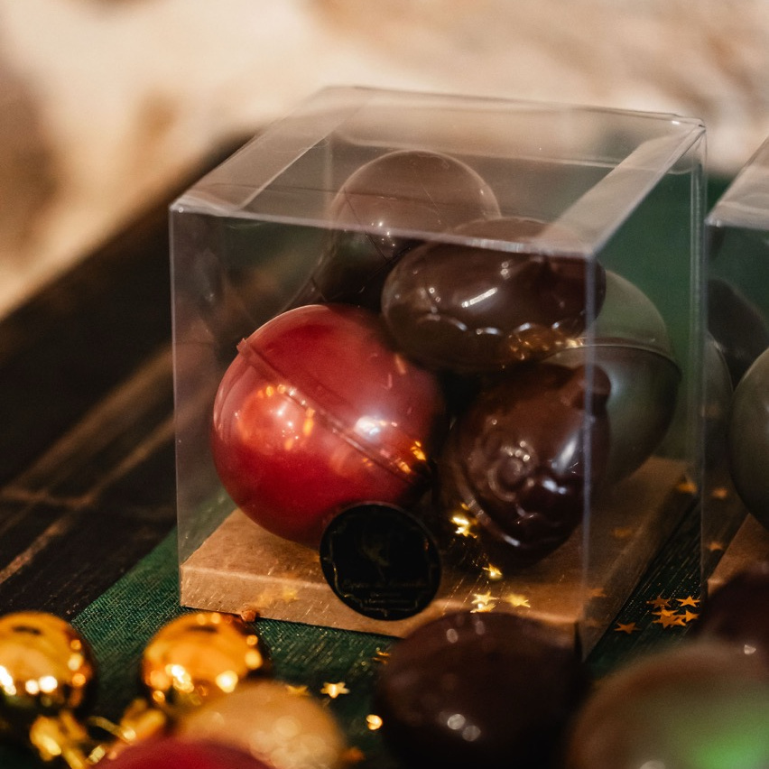 Boules de Noël Cinq boules en chocolat noir 62% et lait 40% Prix : 14,50 € TTC Non disponible en ce moment Boîte de 5 boules en chocolat. Non garnie. Portfolio Conservation : À conserver dans un endroit sec entre 16°C et 18°C
