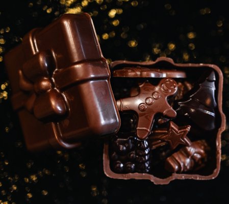 Moulage garni de fritures de Noël (chocolat lait 40%, noir 62%)