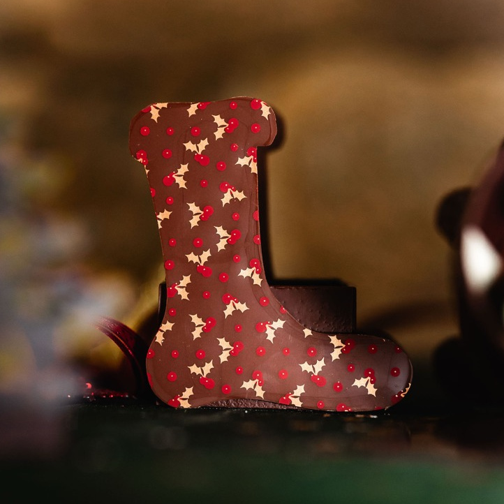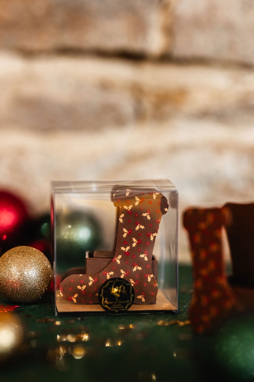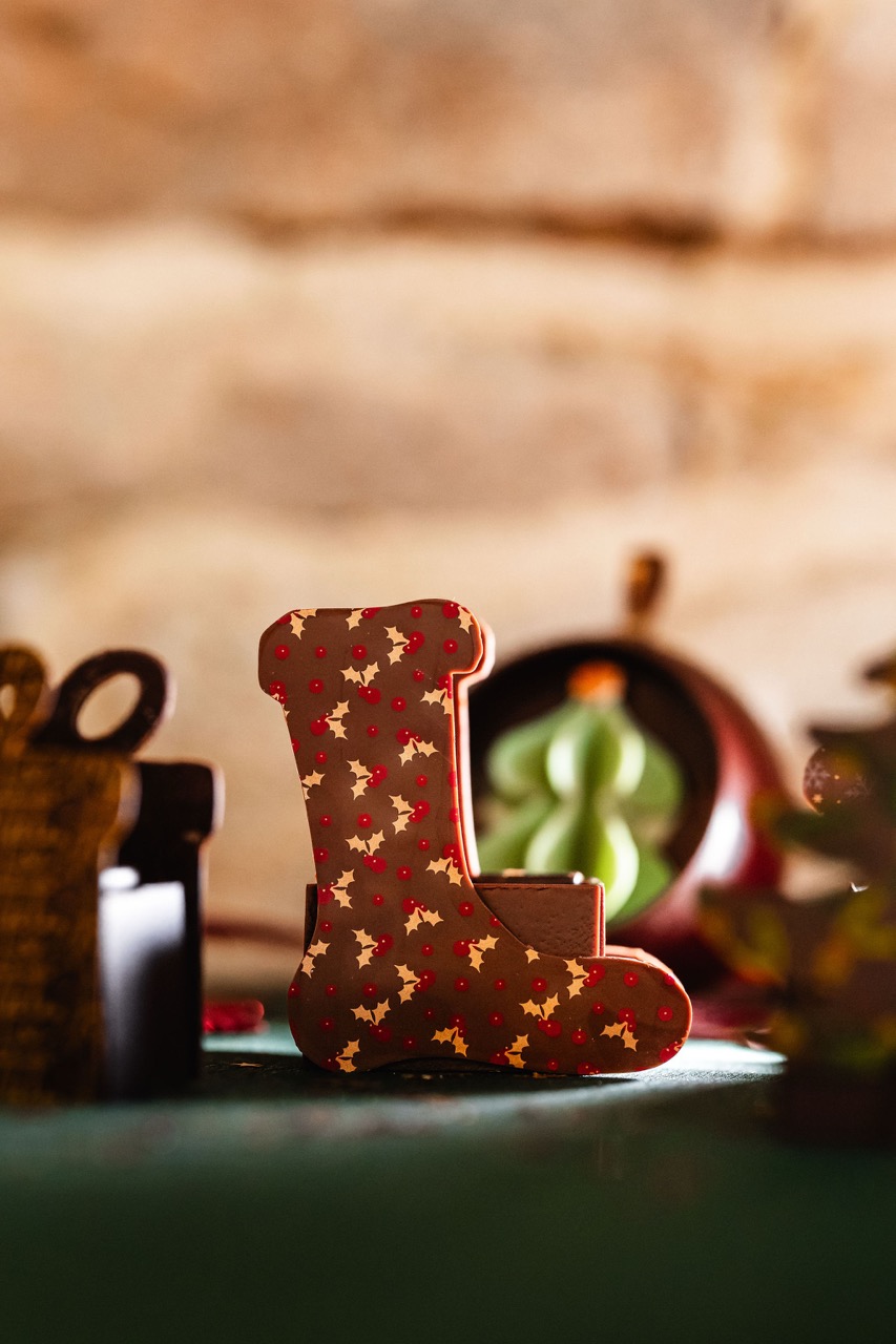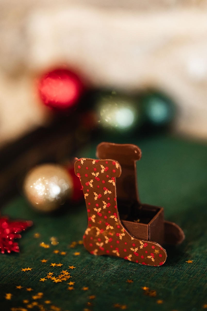 Petit sujet en chocolat au lait garni de ganaches et pralinés