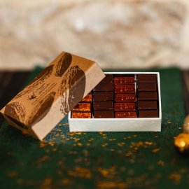 Sujets en chocolat garni d’un assortiment de ganaches et pralinés