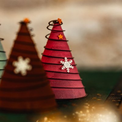 Sujet en chocolat noir garni d’un assortiment de ganaches et pralinés