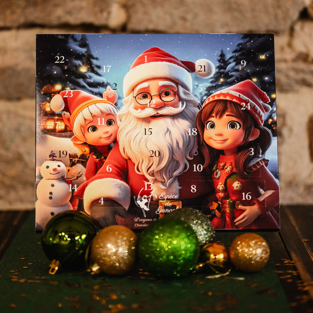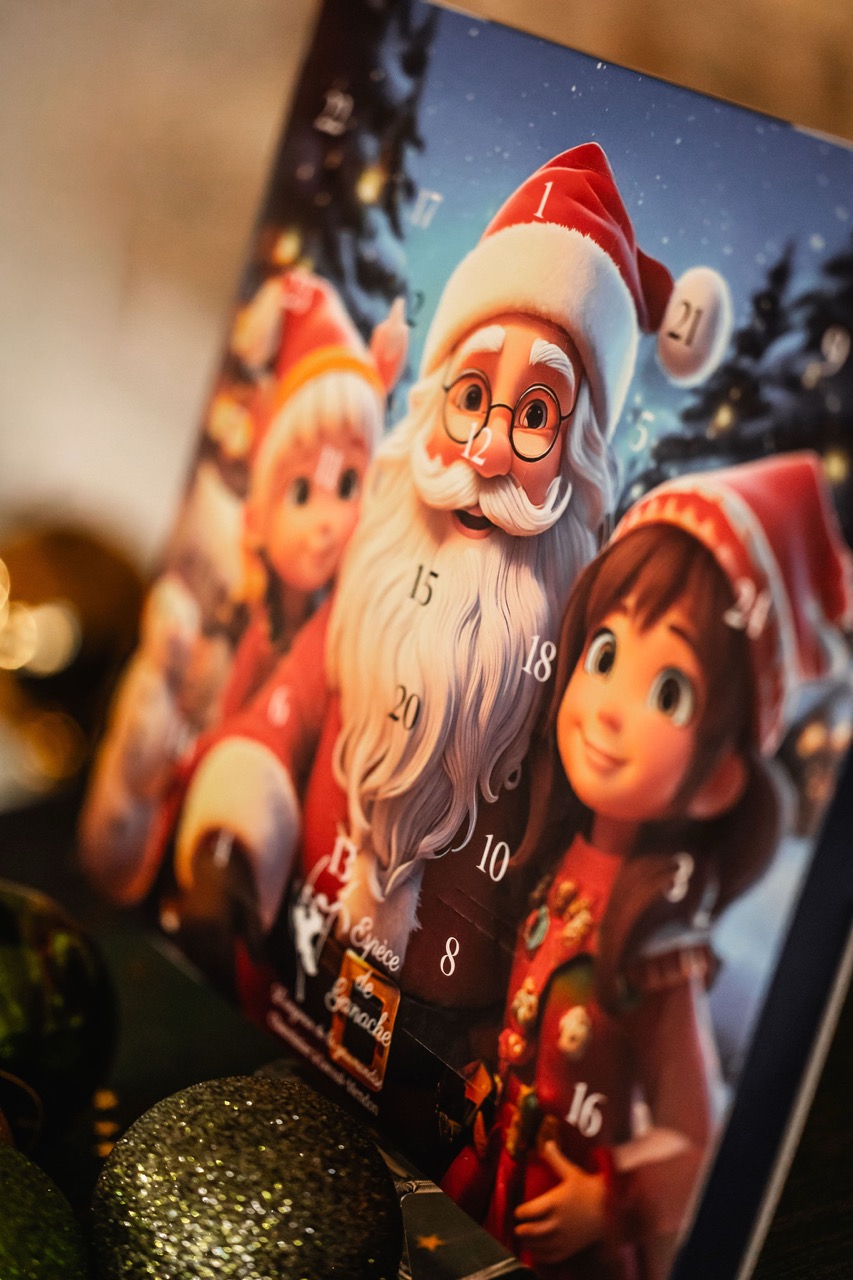 Lettre au Père Noël Calendrier de l’Avent avec une figurine en chocolat à découvrir chaque jour Poids net : ~110g Prix : 15,00 € TTC Ajouter au panier 3 possibilités sont proposées : moulages lait ou noir. Choix à préciser dans les préférences de la commande. Chocolat noir 62%. Chocolat au lait 40%. Portfolio Conservation : À conserver dans un endroit sec entre 16°C et 18°C