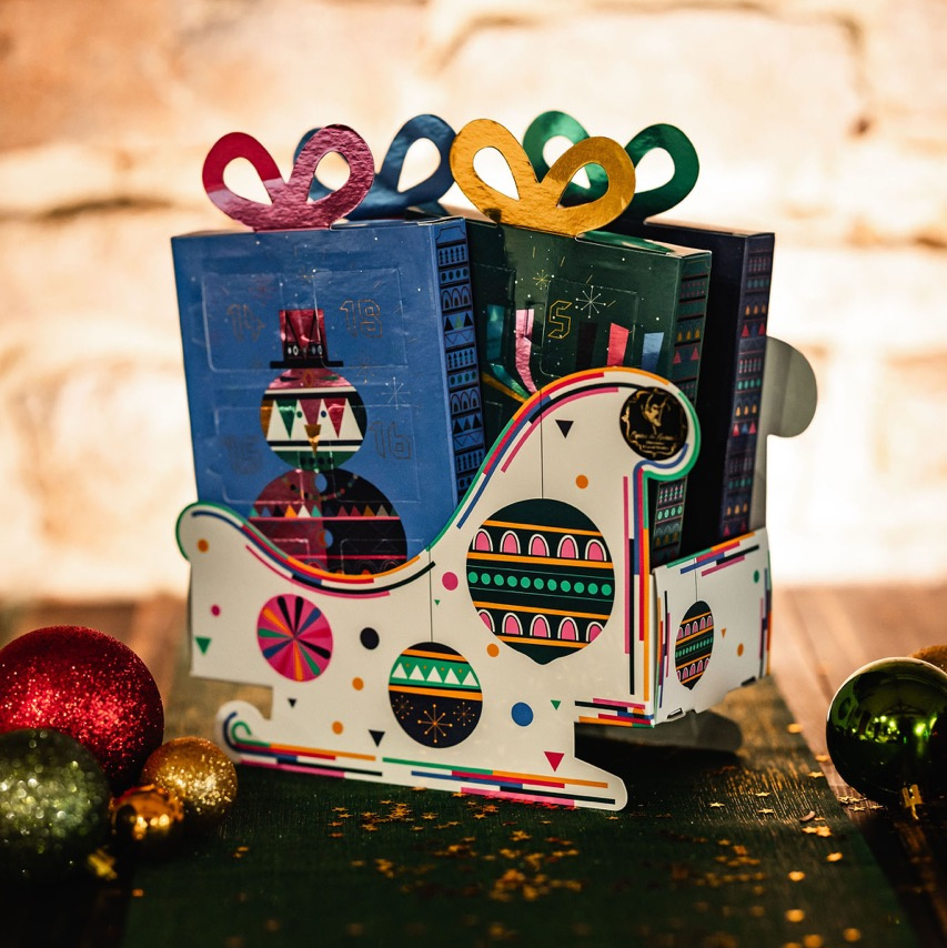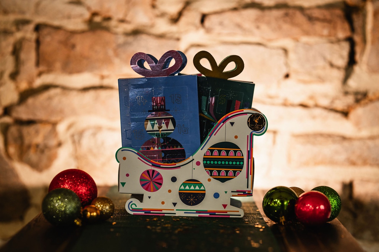 Calendrier de l’Avent garni de nos pralinés, rochers, mendiants, fritures de Noël, enrobés de chocolat : caramels, pâtes de fruits, nougats et guimauves.